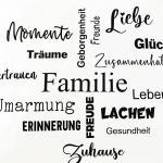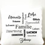 Auf der Oberseite der Kissenhülle ist alles rund um die Familie aufgedruckt.
