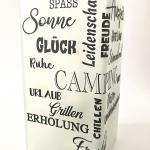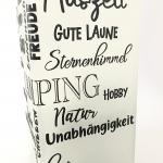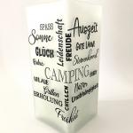 Diese Tischleuchte ist mit einem Design zum Thema Camping von mir in liebevoller Handarbeit gestaltet worden.