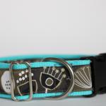 Das Halsband Crazy besteht aus türkisfarbenem Gurtband und hat einen hochwertigen Kunststoffverschluss.