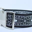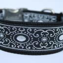 Das Halsband Silver EYE besteht aus schwarzem Gurtband mit einer wunderschönen verzierten Borte in Schwarz/Silber.