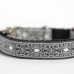 Das Halsband Silver EYE besteht aus schwarzem Gurtband mit einer wunderschönen verzierten Borte in Schwarz/Silber.