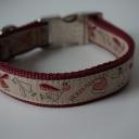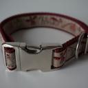 Das Halsband Herzensengel besteht aus bordeaux farbenem Gurtband mit einer mit Engel verzierten Borte.