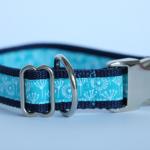 Das Halsband Pusteblume besteht aus dunkelblauem Gurtband und hat einen hochwertigen Aluminiumverschluss.
