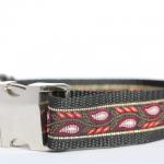 Das Halsband Dots Rot besteht aus schwarzem Gurtband und hat einen hochwertigen Aluminiumverschluss.